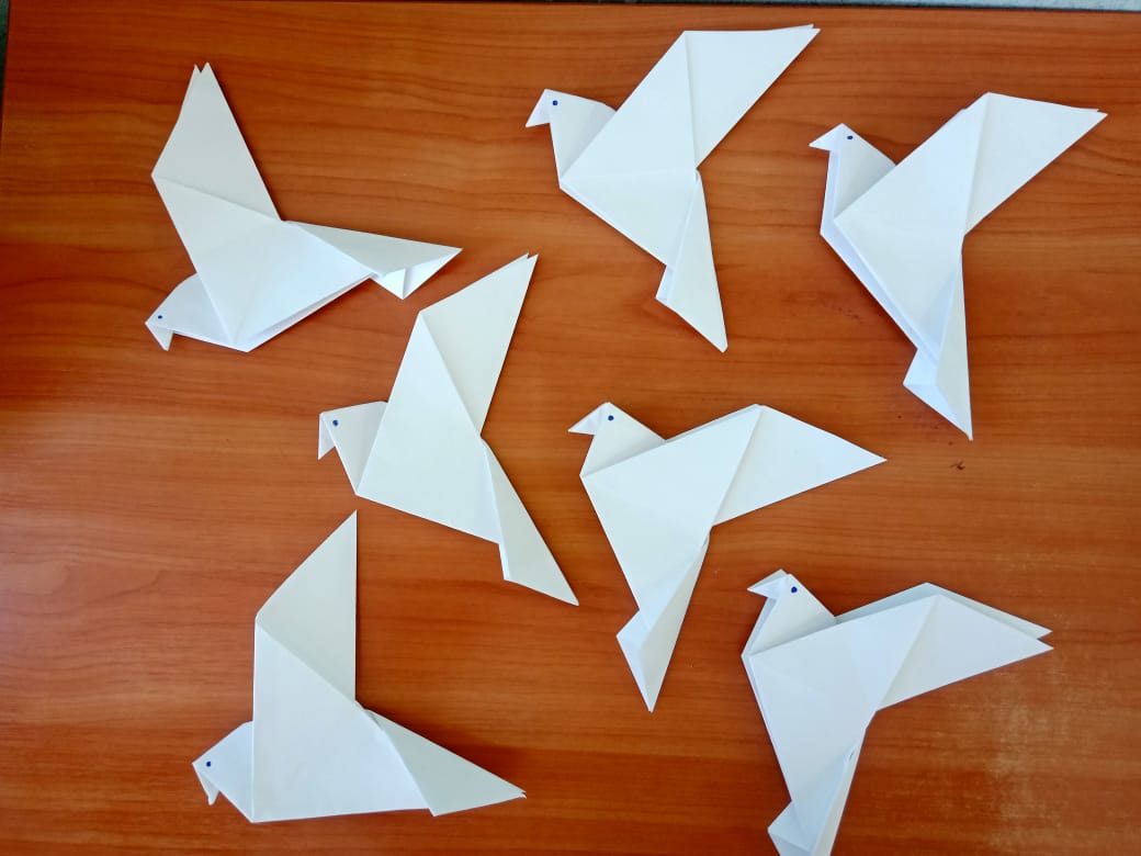 А затем дети дружно перешли к творчеству! Под руководством наших воспитателей они освоили технику оригами и своими руками создали главный символ этого дня — белого голубя. Эти бумажные птицы несут в себе глубокий смысл и надежду на светлое будущее.