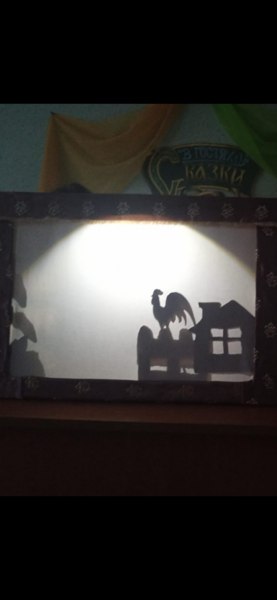 Детям очень понравился необычный вид театра, и после показа спектакля они с удовольствием рассматривали силуэты персонажей.