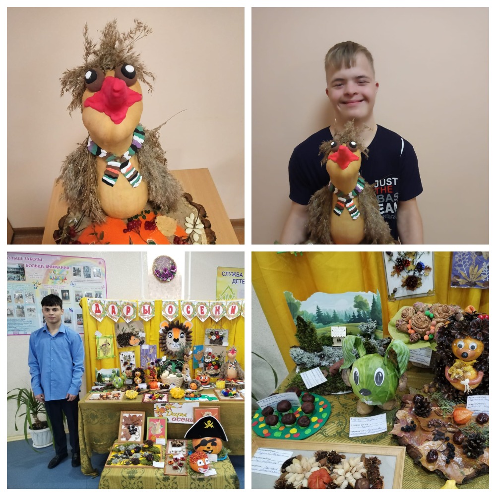 В фойе нашего центра открылась выставка «Дары осени», на которой представлены творческие работы воспитанников, выполненные из природных материалов. Посетители могут полюбоваться изящными аппликациями из засушенных листьев и цветов, а также забавными поделками из шишек, желудей, каштанов и веточек.
